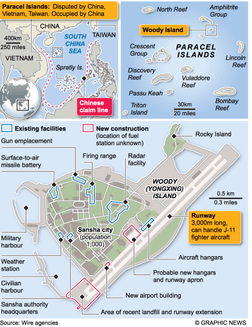 La Cina ha dislocato (nuovamente) dei caccia J-11 and J-7 fighter jets sull’isola di Woody (Yongxing in cinese), la stessa su cui pochi giorni fa ha posizionato due batterie antimissile.